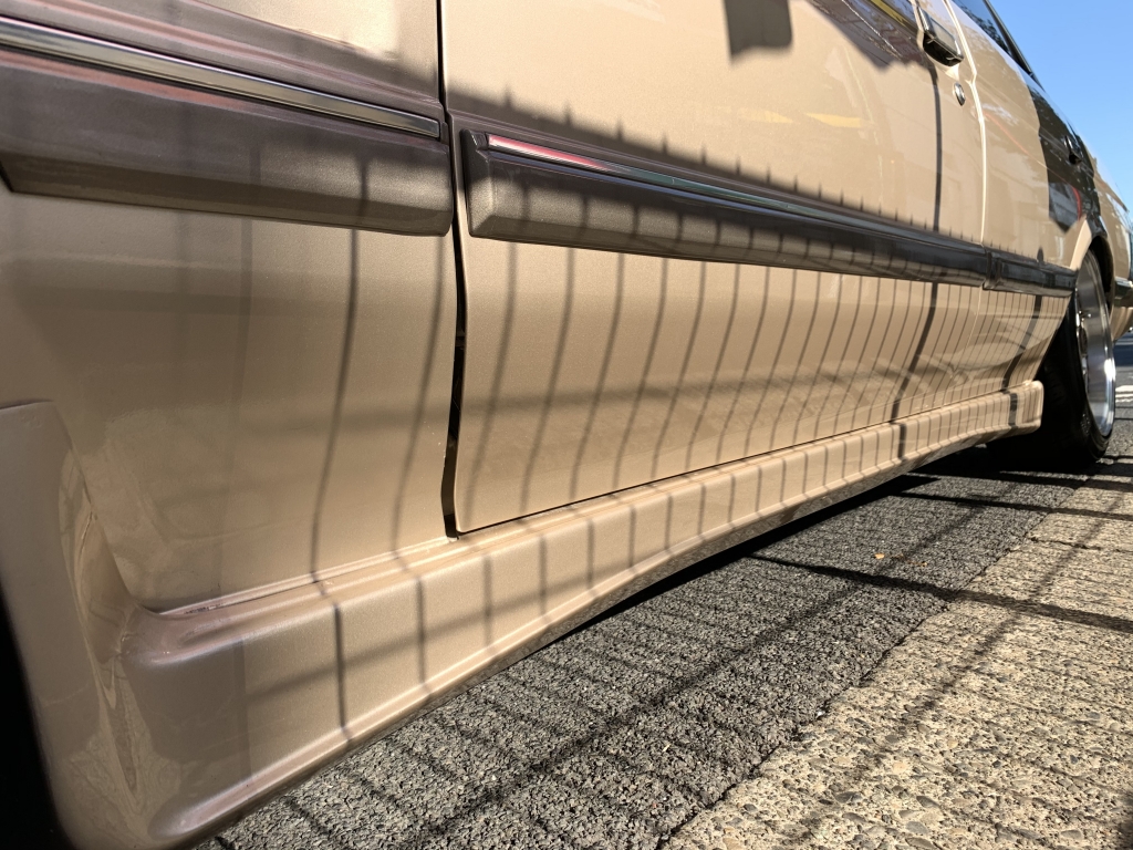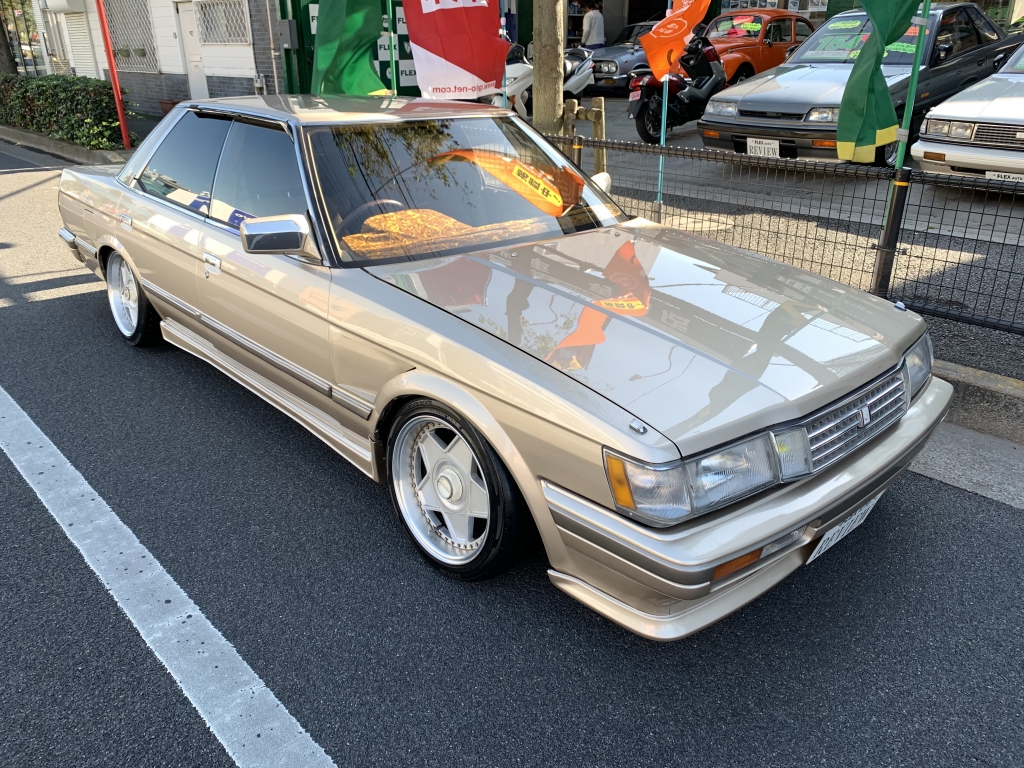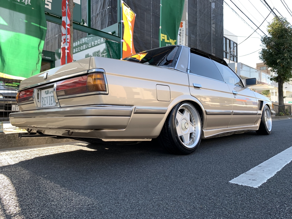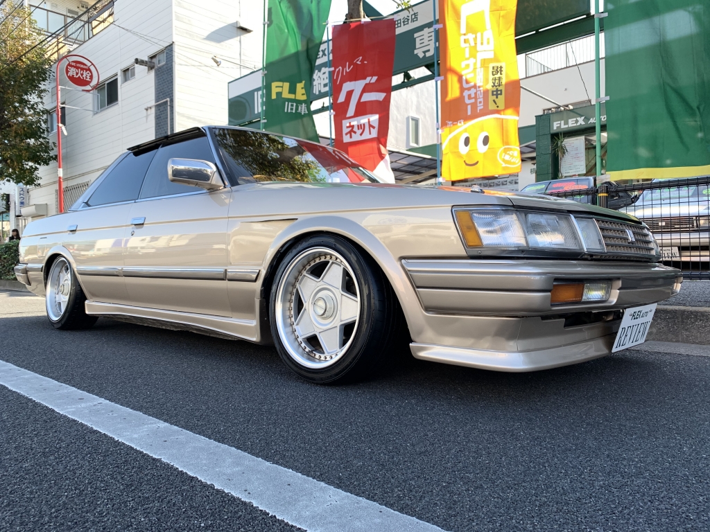 久々にGX71のマークⅡが入庫です!20~40代まで幅広く人気のあるバブルの名車ですね。その中でも今回は最終のグランデリミテッドAタイプがベースとし、ワンカムATなので最高にカッコイイ街乗りネオクラシック車がテーマで仕上がったマークⅡと思ってください。普段も気兼ねなく乗れて、ガチャガチャではないサラッとオトナチックなカスタムで。目の肥えてるGX系ファン、旧車セダンファンにはたまらないのではないかと!修復歴無しのしっかりとしたボディに10セルシオ純正カラーのベージュメタリック、モールカラーは元のゴールドを生かして。一見同じ色に見えて実は違う色という味な組み合わせです♪フロントはクレスタバンパーにワンオフフェンダーダクトをさりげなく入れて。トランクはエンブレムを取ってキレイにスムージングでパキッとした雰囲気ですね!室内は仕上げ中です。内外装がベージュカラーってオシャレすぎますよね!当店オリジナルのマークⅡ専用設計のダッシュマット付きです♪ステアリングはあえて純正のままですがお好みのステアリングを入れるのもアリ。イタルボランテやミケロッティがオススメですよ!機関に関しては絶好調です。しっかりとメンテナンスされています!私てきにはワンカムATの街乗りは最高に扱いやすいと思っています。今はツインカム5速が圧倒的な人気を誇っていますが、ワンカムATを侮ってはいけません。乗り味もスムーズだし音も良いんですよねワルさがあって。実際に乗ればこのマークⅡの良さが分かりますよ!足回りはフロントが車高調にリヤが社外ショック&バネでローダウンですが、意外と腹下を気にする車高ではありません。ホイールは当時物のアウトストラーダのモデナ、しかも希少サイズの16インチ7Jと8Jです!簡単には手に入りませんし、めちゃくちゃオシャレな足元になりますよね。たまりません。このマークⅡを乗っていればきっと良いことありますよ。毎日が楽しくなります!GX系もツインカム5速はベースが高すぎてカスタムもできない...なんて時代になってしまいましたが、今こそワンカムATを楽しむ時です!仮にミッション&ツインカムを載せ替えたとしてもこっちのほうがお得です。追加カスタムのご相談もお気軽にどうぞ!気になったらまずはお問合せください!