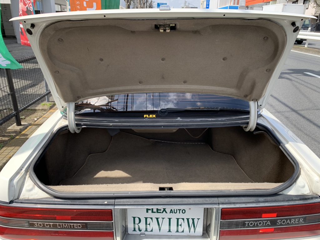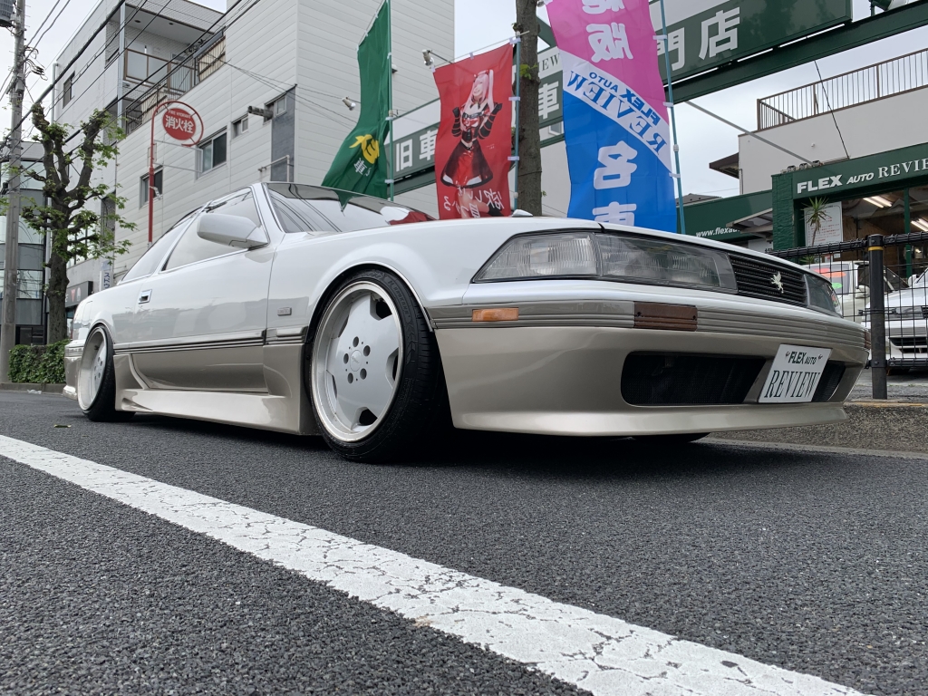 パールツートンにフルエアロ、オマケにザウバーディッシュを履いたシャコタンな20ソアラはなかなか見れませんよ?こんなソアラが街中を走っていたら追っかけてしまいます!今だからできる平成初期をコンセプトに仕上げてみました!やっぱりフルエアロとディッシュホイールの相性は間違いなしですね!修復歴無しのしっかりとしたボディでベースが良いんですよ!エアロは社外品でザウバーディッシュはシーマやクラウンに履くようなサイズなもんでソアラにはオーバーサイズと思われがち。でもタイヤサイズと車高をきっちり煮詰めればこうやってシブい雰囲気になるわけですよ。このディッシュは4ドアセダンに履いたりするのが定番ですけど、そんなことは気にしません。実際リムとオフセットとタイヤサイズのバランスもしっかり取れているから似合っていますよね!やっぱり足回りのマッチングは大事、フルエアロなら尚更のことです!室内はリミテッドの本革シートで高級感も健在です!ソアラのシートに座った時のどっしりとした安心感て良いですよね♪エンジンは7Mターボでストレスフリーな快適な走りで楽しめます!現車確認も大歓迎です。というよりまずは見て欲しいですね!ノーマルでキレイなソアラはたくさんありますけど、人とは違った味でいきたいのであれば迷わずこのソアラをオススメします!この平成初期な感じのカスタムが良いですよね、カッコイイ!20ソアラをこのプライスで手に入れられるのも今のうちですからね。気になったらお問合せください!