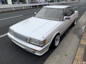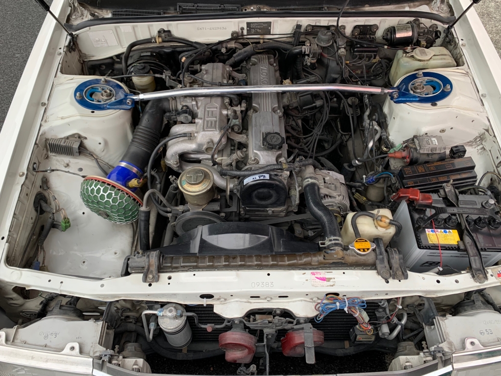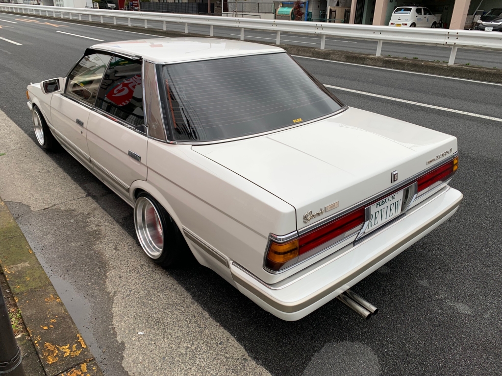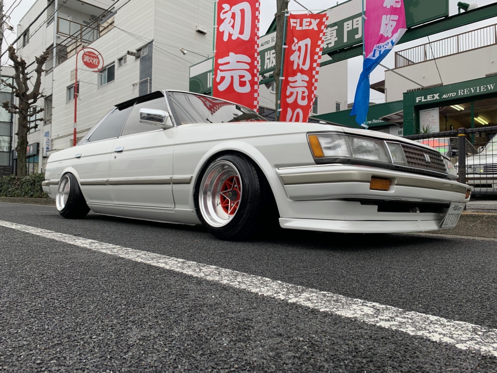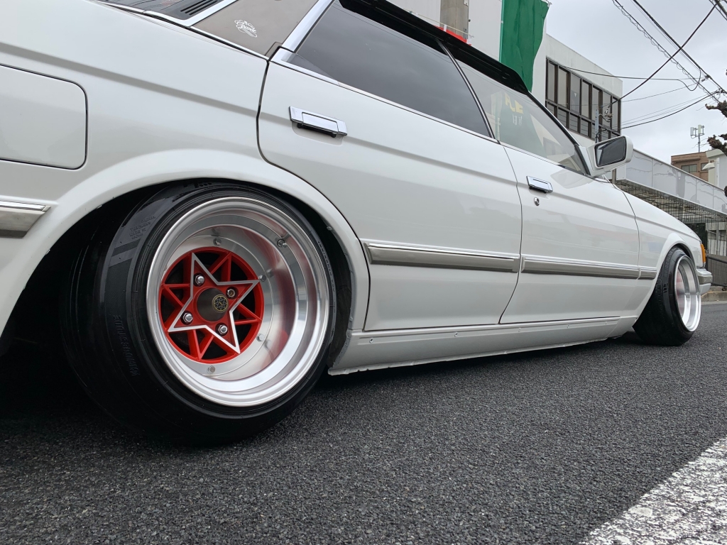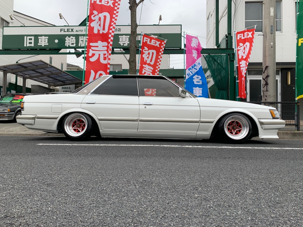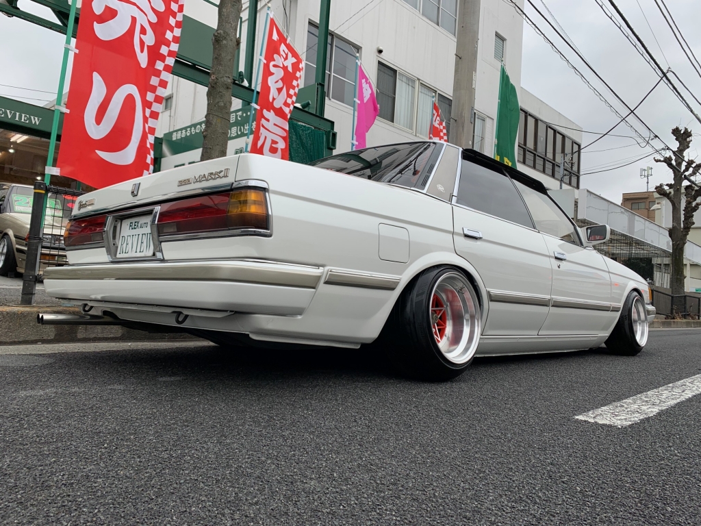 歴代の入庫してきた71マークⅡの中でもトップクラスの出来栄え、というかかなりカッコイイです。この手の車両をお探しの方々でしたら見たらもうすぐに分かるはずですよ。GX71系は店頭に並んでいる台数はそこそこありますけど、ここまでぶっちぎりにキマッているマークⅡも全く見ないでしょう。関東と関西ではカスタムの流派が少し分かれますけど、これはどこ行っても通用します。見た目はものすごくシンプルではあるものの、しっかりとやることはやってあるし煮詰め方もかなり良いです。前オーナーさんのセンス、拘りを感じますよ。久しぶり私が手をつけなくても良いなと思ったくらいなので、そこのところよく味わってご覧いただきたいと思います。強いて言えばリアメンバーを加工してマフラーを作り直したいくらいですが、今のままでも充分にカッコイイです♪少し前に同色リペイントされているので外装はめちゃくちゃキレイです。サイドシルも同色に塗装しているので車高はだいぶ低く見えますね。ボディコンディションもかなり良いです!元々が極上車しか扱わない某GX系の専門店にあった車両なのでそれもうなずけます。なので室内もキレイな状態を維持しています。シートなどは少し傷み残っている部分はありますけど、そんな気になるほどの大きな破けも無いしダッシュボードもキレイです。リミテッドAタイプなのでベージュ内装になりますが、これがまたオシャレで雰囲気良いんですよ。71マークⅡの赤以外の内装は基本レアです!機関の調子も良いです。車検も残っています!数年前にヘッドOHを行っているので1G特有の白煙問題も解決済み。クーラー部品もほとんどを交換しているのでかなりお得ですね。フロントはショップワンオフ車高調にリア社外ショックでローダウン、かなり乗り味は固め。スターシャークは9J10Jを履かせています!リアはナロー加工しているので10Jがすっぽり収まるのです。これは本当にシブいですよ♪タコ足とマフラーは某メーカーのステンレスもの、このワンカムのタコ足があるのは良いですよね。ワンカムらしいワルさ全開の図太いサウンドがたまりません!ツインカムと対照的なのでワンカムの音が好きな方も多いんですよ♪もっと音に拘りたいのなら、せっかくワンカムなので本物のフルデュアルにするってのもアリです!毎度のこと早い者勝ちです♪