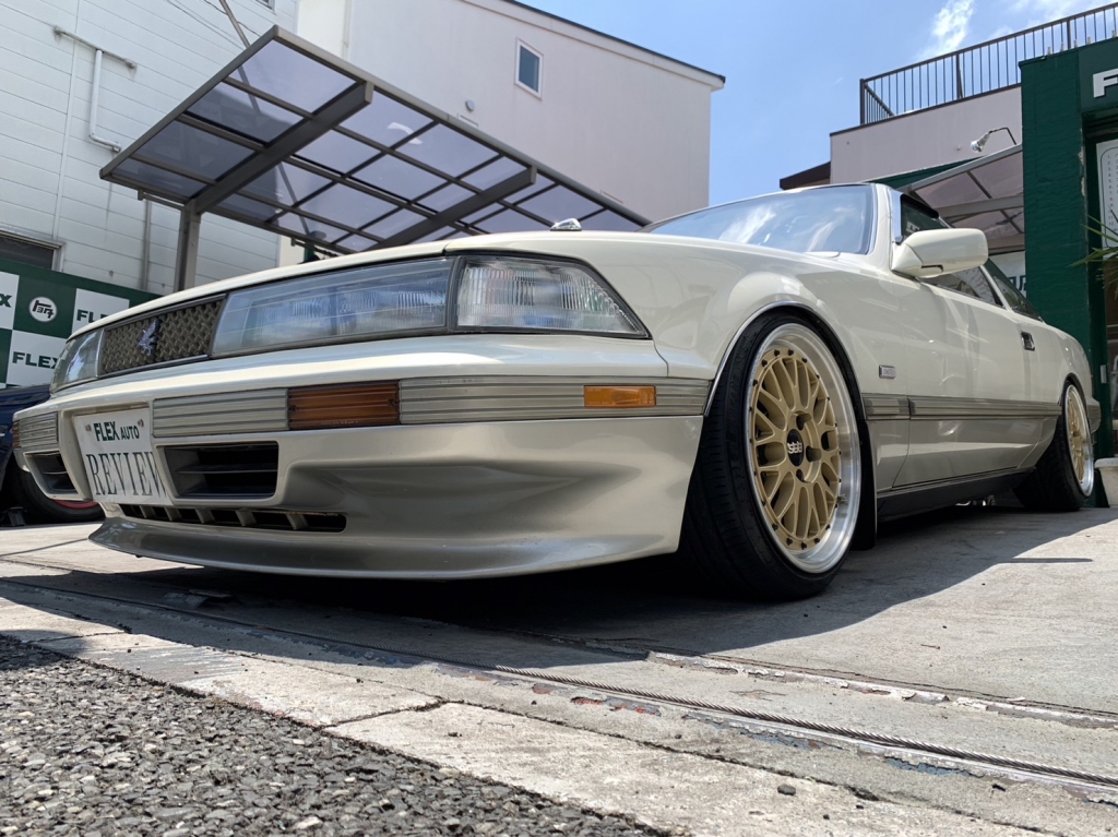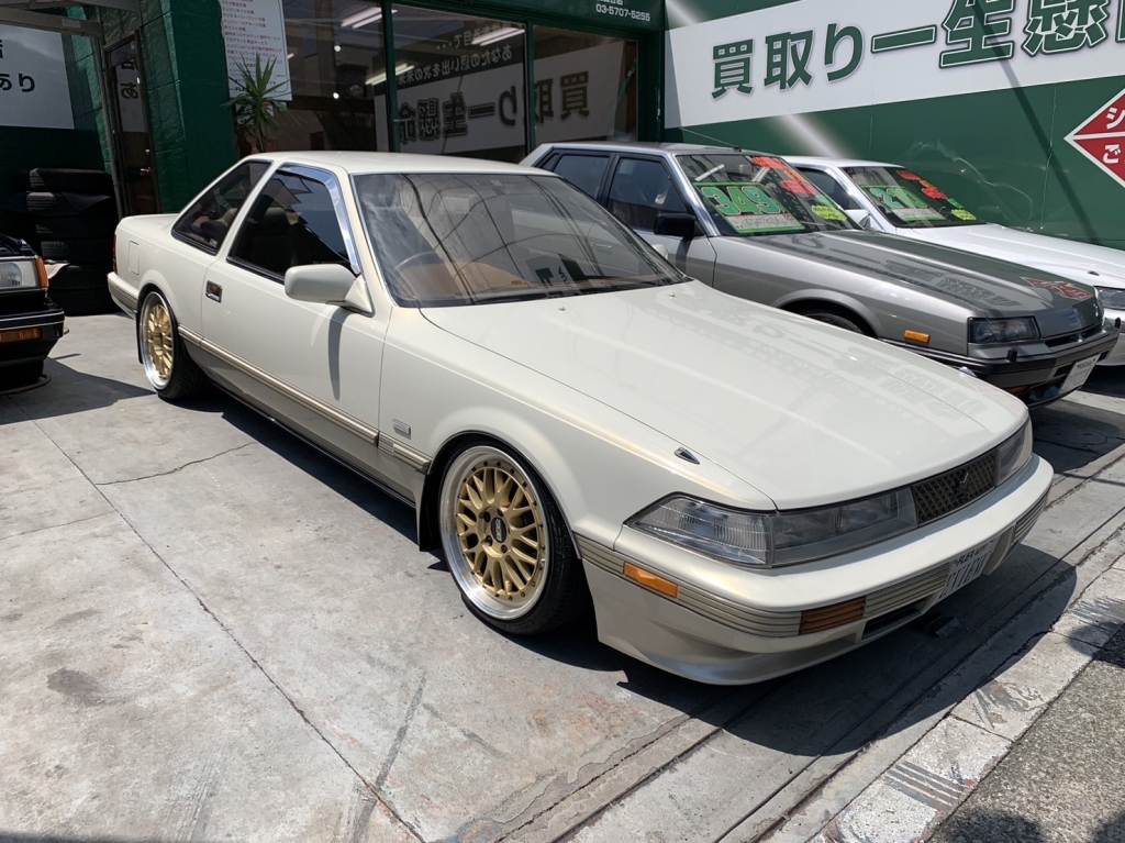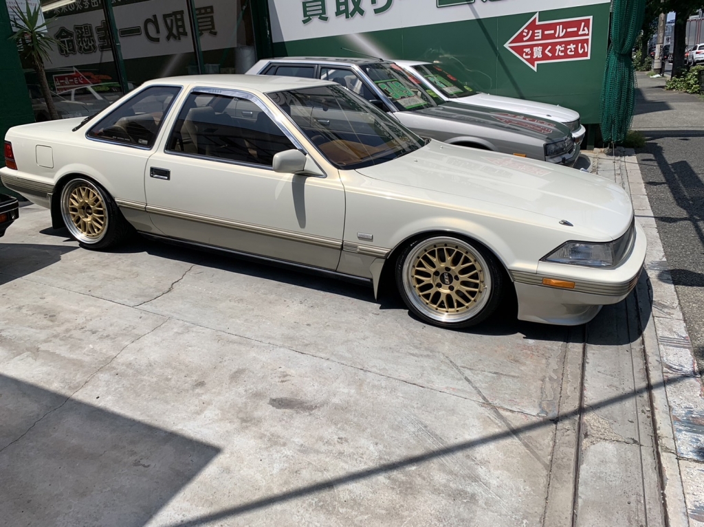 20ソアラのキレイな前期リミテッドはかなりの希少車です。以前に当店で販売した車両が再入庫しました!25Aパールツートンは前期リミテッドのみなのですが、これがまた美しすぎるくらいの色なんです!個人的には大好きですね♪エアロ無しなのでそのボディの薄さを活かして低さとバランス良い部分を強調できる仕様です。履いているホイールはBBS-LM17インチでゴールドだからこそまとまります。このソアラだからというのもありますけど、このシャコタンなのに下品さもなくむしろオシャレな雰囲気すら漂います。現車を見てもらえれば一瞬でその意味が分かりますよ。マフラーがノーマルのままなので、次のオーナー様にはワンオフマフラーをオススメします!レイアウトは是非ご相談ください。機関も良好で普段に乗るにも抜群楽しめます。室内のリミテッド内装は経年劣化は少し残っていますが高級感は健在です。運転していて良い気持ちにさせてくれます!20ソアラをお探しでしたら大推薦ですので、お問合せはお早めに!
