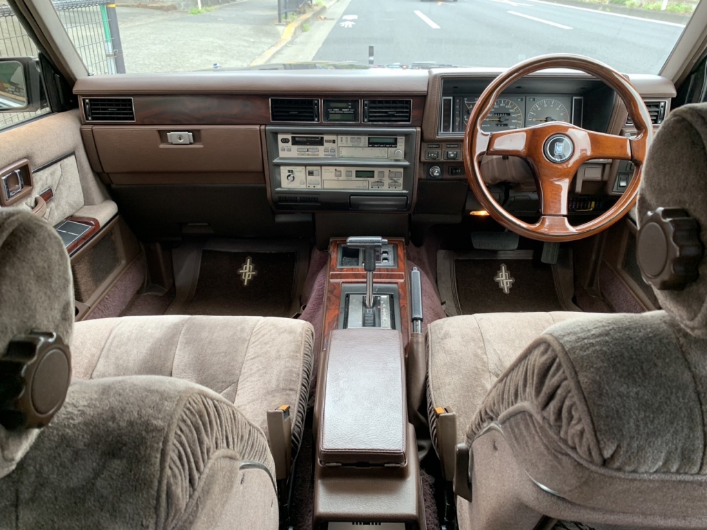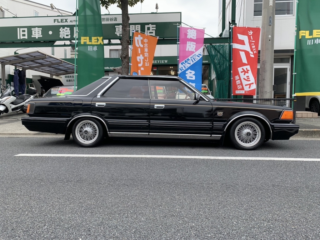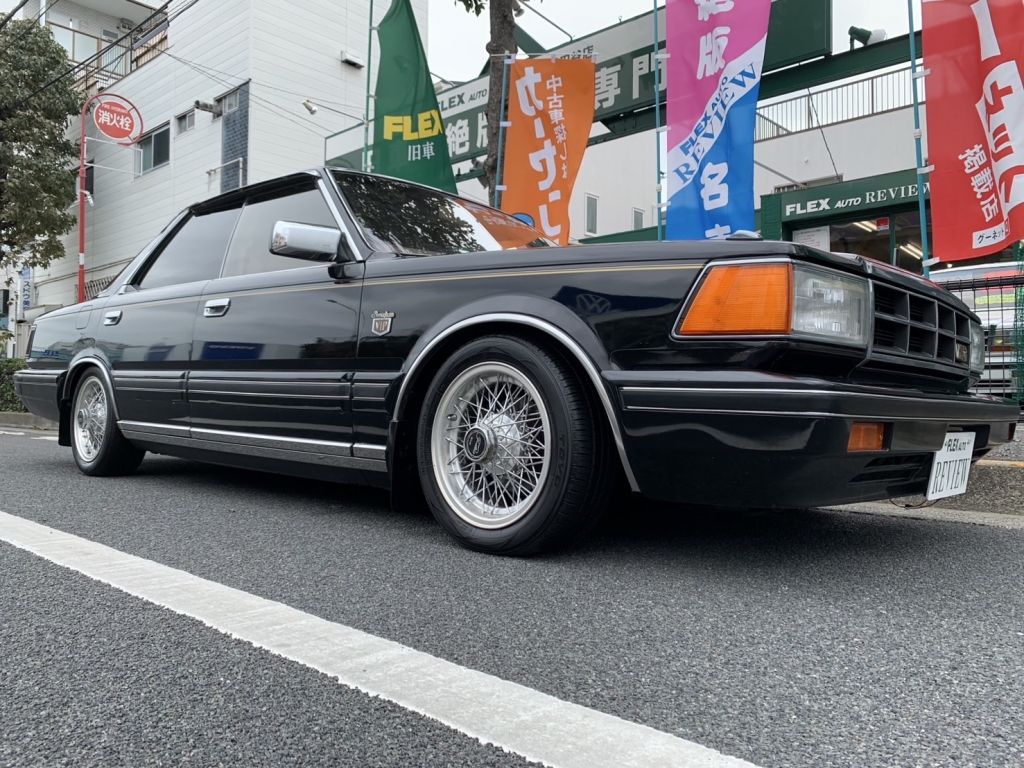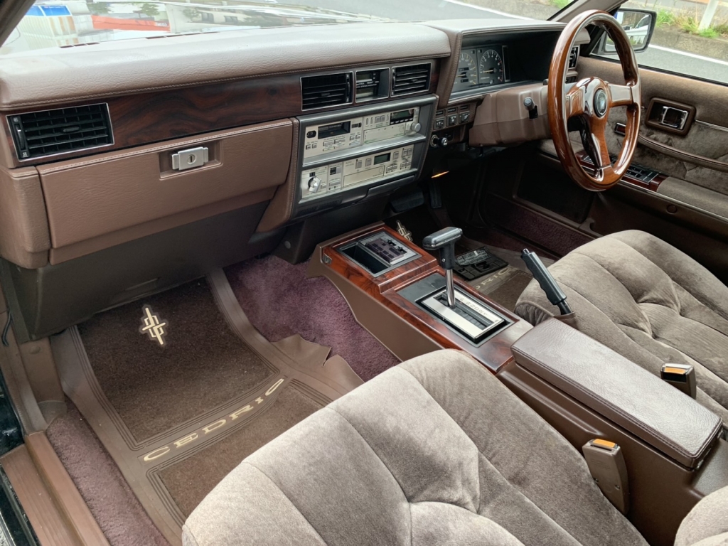 Y30セドリック前期のブロアムVIPターボなんてここ何年も入庫していません。しかもこんなに良い状態で残っているなんて驚きです。前後ブレーキキャリパーはOH済みでフルタップ車高調も入っています。ちゃんと手を入れているのはとてもナイスですよね。黒に当時物フォルテクスワイヤー履いてシャコタンというド定番なスタイルですがこれが激シブなわけです!すごいですよね当時の日産車、とくにこのY30あたりは。ノーマル外観で伸びしろがありすぎるから、そりゃあもうこのカッコよさになります。探している方も多いでしょうけど私もめちゃくちゃ欲しいです。Y30の良さはガッチリ知ってしまっていますから!街中で見かけたらより一層シビれますよ。購入してから1年~2年後とか、手に入れて良かったなと思えるはずです!ちょっと今回はプライス張ってしまいますけど、それなりに楽しめるセドリックだということは間違いありません。キレイな外装、内装、ボディコンディションもサビ少なく良好、エンジンも絶好調で力強い加速します♪エアコンは今のところリア側がちょっと冷え弱いけど実働です。ガスチャージしてどうなるかですね。室内は気になる傷みは無くキレイです。高級感のあるブロアム内装はキレイでないとね!冷やかしではなく本気でお探しの方は今回のチャンスをお見逃しなく!お問合せをお待ちしております。