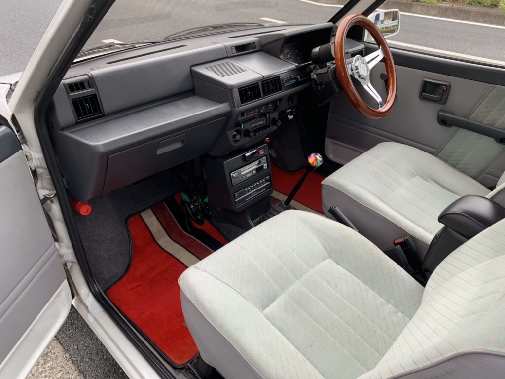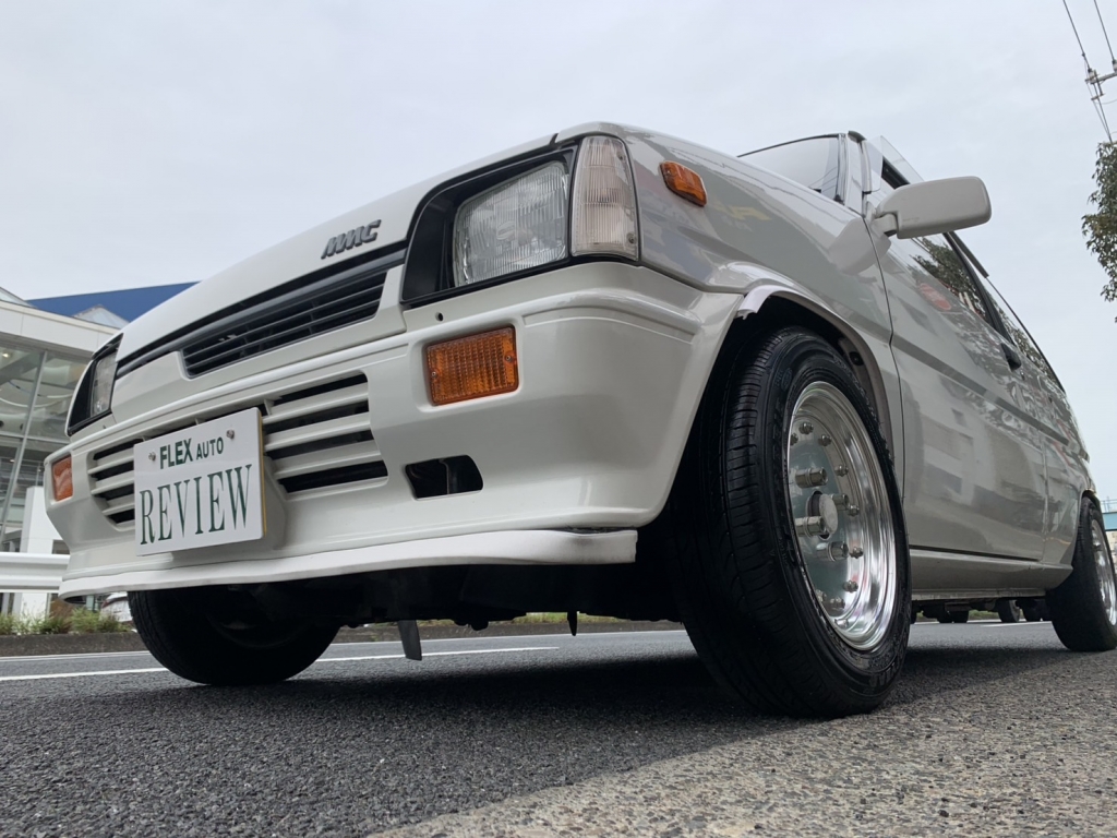 絶滅危惧種とも言われるくらいに残っていないH14系ミニカが入庫しました!本当に出物が無いのであえて探している方はほとんどいないだろうけど、このミニカを見てしまっては気にならずにいられないでしょうに!私も普段乗りで欲しいです。欲しくなるんですよー♪しかもこれだけ良い状態で残っていること自体が奇跡的ですね。塗装は経年劣化でキズとかも少し残っていますがボディ状態が良すぎるくらい。年代物の軽自動車でこんなに腐食のないパターンはレアです。ノーマルボディでパセリデカールなんかも残っていて素晴らしいです!変にいじられていないのも好印象ですよね。前後車高調、マークⅠ、ワンオフステンレスマフラー、ラテラルロッドなどこれは欲しいなというアイテムが付いているのはとてもお得です。室内も定番のウッドハンと水中花シフトノブくらいでほぼノーマル状態をキレイに維持しています。社外の水温計とタコメーターが付いているがかなりありがたい!安心して走れますねー!走行63千㎞、しっかりメンテナンスされながら乗られてきているので機関はすこぶる調子が良いです。なんとクーラーも実働です!ダンドラキャブとワンオフマフラーの恩恵によりアクセルもレスポンス抜群、甲高いサウンドもたまりません!ゴーカート気分で走れますので普段乗るのも楽しいし、運転のおもしろさがやみつきになります♪荷物もそこそこ詰めちゃうのがまた良いところ!マフラーやホイールなどの純正部品もあります。前オーナー様がかなり手をかけています。タイヤもまだ新しく、他ステリングギヤボックスとタイロッドエンドを交換、ポイントとデスビキャップ交換、アッパーホース交換、ライニング交換、ラジエターフラッシング、バルブクリアランス調整なども行っています。これからも安心して乗っていけますね!現車確認も大歓迎です!お問合せをお待ちしております。