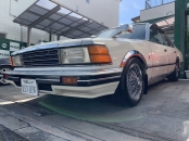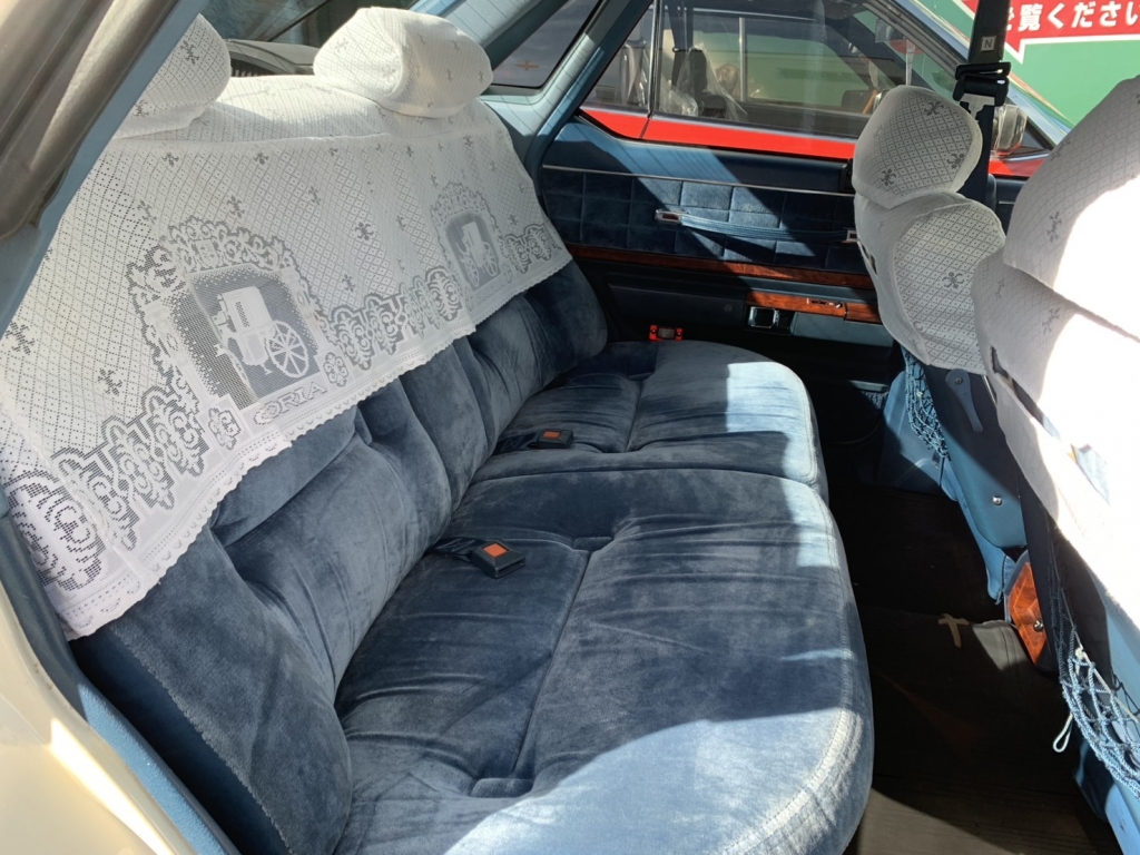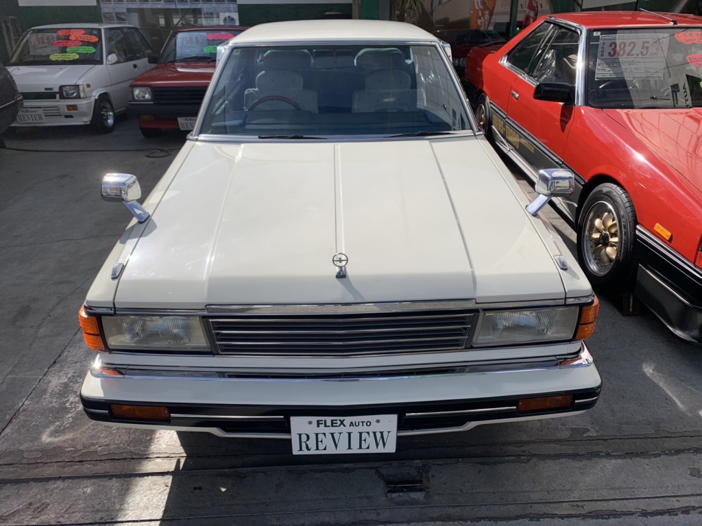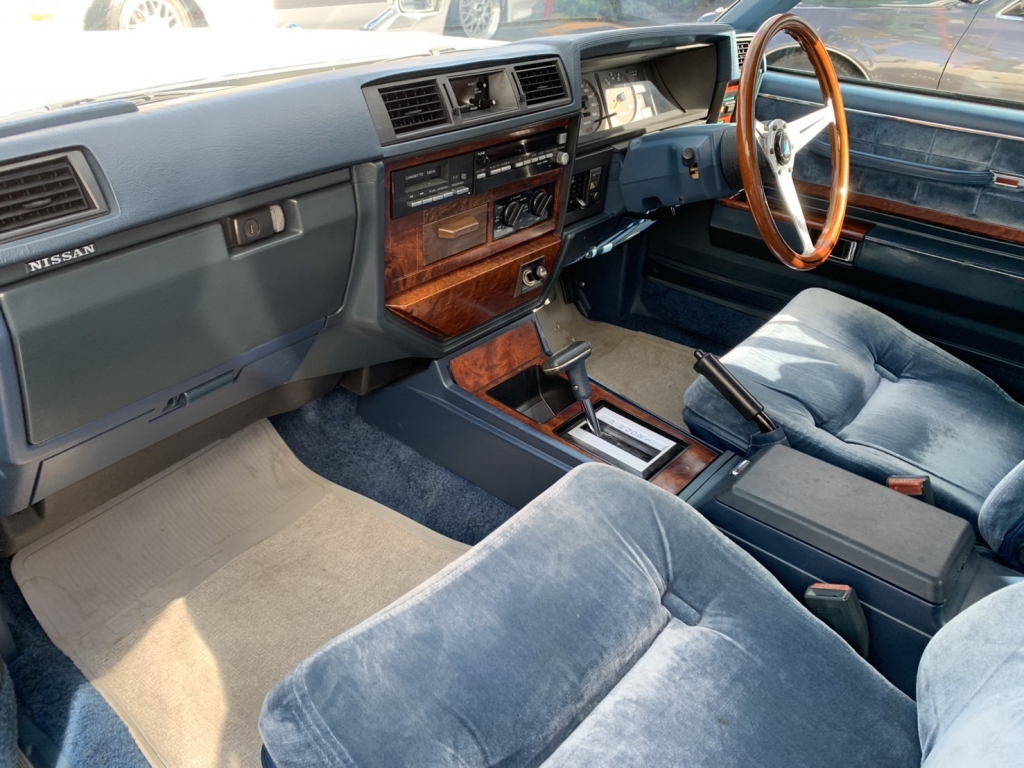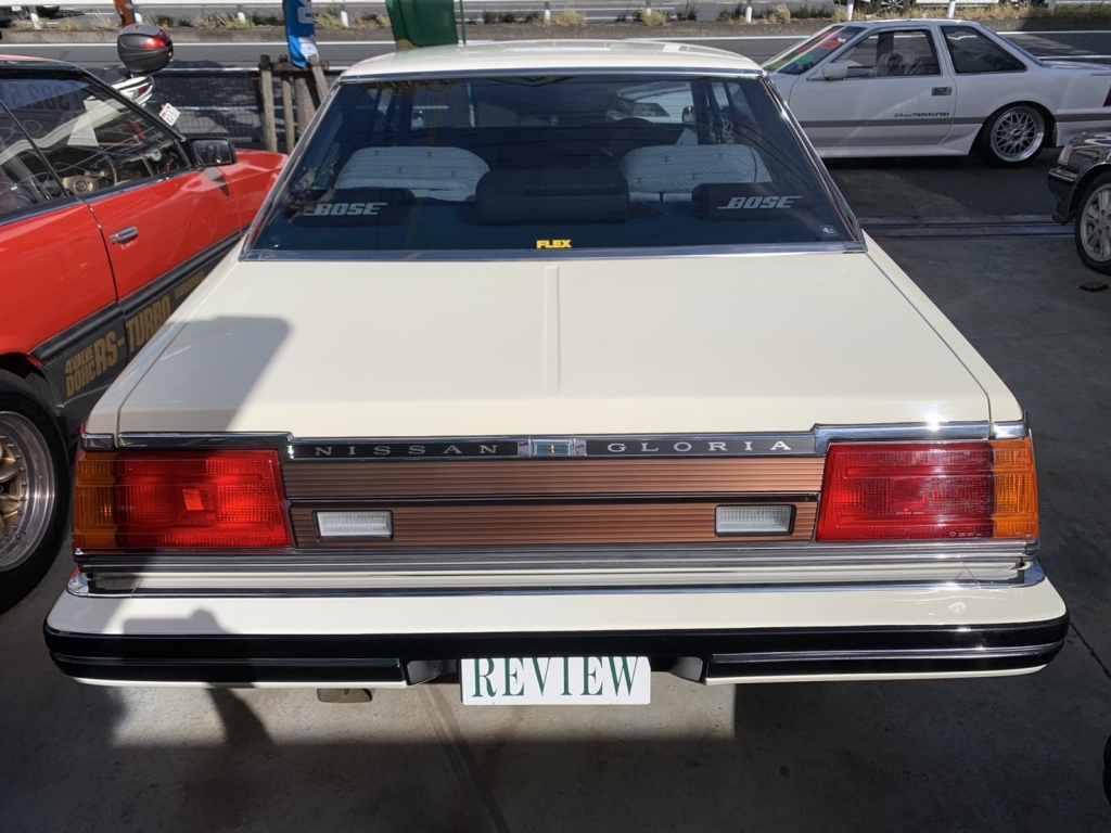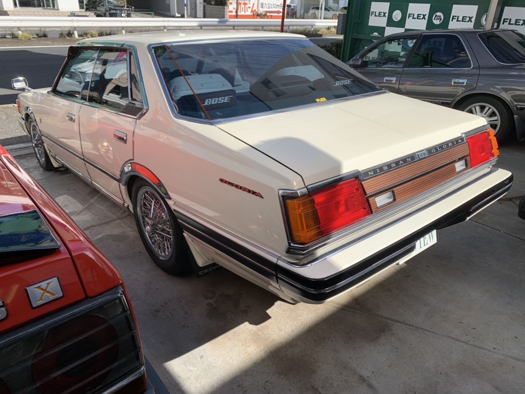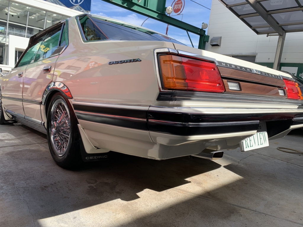 この430グロリアは素晴らしいです!あれこれ説明するよりもまず現車を見ていただきたい、でなければ写真からこのみなぎる素晴らしさを感じ取ってください♪語彙力を失うくらいの極上コンディションです。ただでさえ日産車でこれだけ年数が経っているにも関わらず、これほどのボディコンディション、そして室内のキレイさね。メッキ部品の状態も良いのでメリハリつきすぎて印象も抜群に良いです。もちろん各所塗装の直しとかはありますけど、ベースが良いからこそです。SGLエクストラターボってほぼブロアムと変わらないんですよね。グレードに拘ってどうしてもブロアムが良いなんて言っている方々も、このグロリアを見たらそんな言い訳すらもできないですよ。とにかく内外装文句の付けようはありません!ちょっとローダウンにキレイな当時物フェントリ&ペイトンワイヤーしかも16インチ!!この16インチというのがどれだけ希少なのかをご理解ください!私もY30乗っている時はずっと16インチ探していましたが全く出物が無いんですよ。ほとんどのワイヤー履いているオーナーさん14~15インチですからね。こういったところも高ポイントですよね。尚、リアのショックはエアーで一時的に車高を上げられる調整タイプになっています。室内のコンディションも抜群に良いのですが、こんなにキレイな青内装は残ってないですね!とくに青内装好きにはたまらないですよ、私は青内装大好きなのでここに泊まり込みたいくらい居心地が良いです。必須アイテムなファンシーランプも健在です♪エアコンも実働で普段乗るにも快適です。このグロリアで普段乗りしてたらそれも最高すぎますが。もちろん機関も良好です。エンジンルームも仕上げ済みなので隅々までキレイです!字光式ナンバーベースも付いているので、字光式をご希望の方はお得ですね♪毎度のこと早い者勝ちですので、本気の方は即お問合せください!
