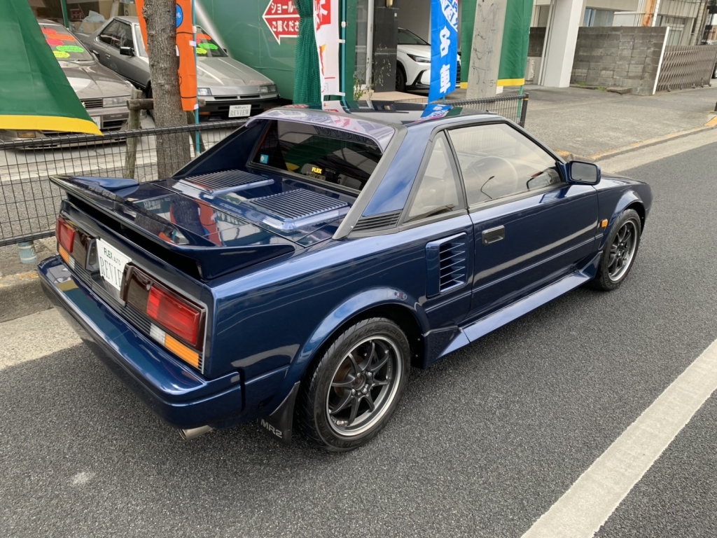 久しぶりにダークブルーノーマルルーフのMR2が入庫しました!ダークブルーといっても一度同色リペイントしてあるためオリジナルの色より若干明るいですがカッコイイです!以前に当店で販売したことのある車両で、前オーナーさんが乗られている時もメンテナンスは行き届いています。MR2をお探しの方はこのお得なチャンスを活かしてください!あれこれ考えるのも大事ですけど、まずは乗ってみないと!ボディコンディションを気にされる方は多いと思います(基本的なことですが)。しかしながら写真の通りボディはしっかりしていますよ♪ひとつの見極めポイントとしてフロントのラジエター下部サポート、ここがグッサリ腐食しているパターンはありがちですが、この車両は大丈夫です。各所も気になる腐食はなく好印象です。塗装面は小傷とかは残っていますがツヤはあります!室内はお約束のダッシュボードまわりの切れは残っていますが、そこ以外は気になるところもなくキレイな室内です。しっかりMR2のニオイがするんだよな。エアコンは実働、パワーウインドウもOKです!機関も良好、エンジンもうるさいくらいしっかり回ります。ホイールは今では希少なレイズCE28の15インチ、このデザインがスポーティでイカしてます!しかも軽量、足回りに優しいです♪街乗りからワインディングまでバッチリ楽しめるMR2、お見逃しなく!まずはお問合せください!