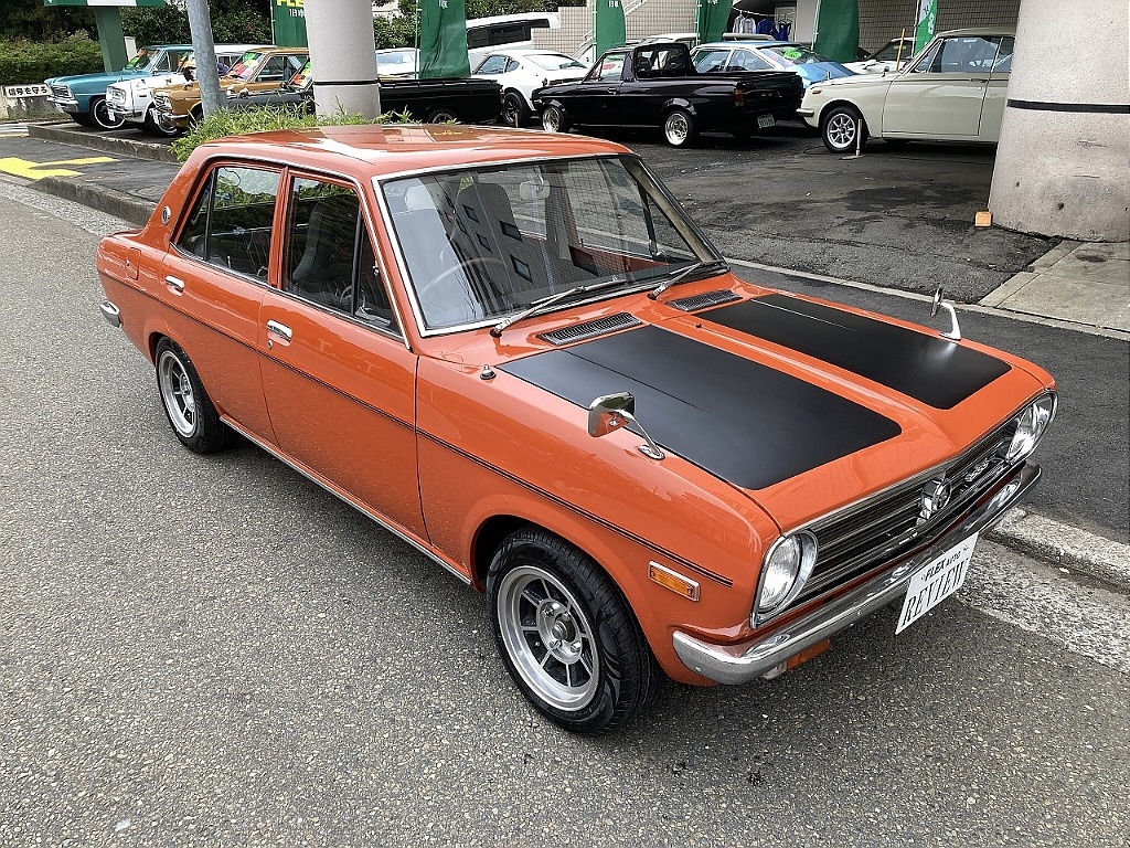 とってもレアで希少なDATSUN1200SSSが入庫いたしました!!日本で言えばB110サニーの4ドアなのですが、オーストラリア仕様だとDATSUN1200という名前になります!!そして今回の車両はその中でもSSSというグレード!!「いやいやいや、SSSは510ブルでしょ。そんな取って付けたようなグレード?」ってお思いの方も多いと思います。私もその一人でした。が、しかしながら調べてみると本当にサニーにもSSSが存在しました!!生産台数もかなり少なく情報は限りなく少ないですが…。という事でまず国産のB110サニーとの違いですが、キャブレターがデロルトのツインになっています!!純正でデロルトってのがシブい!!内装で言うと面白いのがセンターコンソールの時計の部分がタコメーター!!外観は見ての通りオレンジボディにブラックストライプ!!もちろん細かい違いはたくさんあるのですがこれだけでも十分面白いと思います!!ちょっと説明が長くなってしまいましたが、肝心の状態はと言うと中々良い感じです!!このオレンジのボディがシブいですよね!!塗装の状態も良好!!ツヤもあって基本的に問題無いです!!メッキパーツもまずまずの状態!!ローダウンしてホイール交換タイヤは新品を入れました!!これですぐに乗れますね!!内装もダッシュにひび割れこそございますが目立つような嫌な傷みはなくすっきりとしています!!シートのヤレも少なく良い状態です!!機関はA12エンジン&デロルトそしてタコ足マフラーと入っています!!A型らしいサウンドで気持ちよく吹け上がりますよ!!オーストラリア仕様ですので右ハンドルってのが良いですね!!他にもこのクルマならではの魅力は有りますが普通にB110サニーの4ドアと思って乗っていただいて良いと思います!!軽くて良く回るエンジンが楽しいです!!イベントでは目立つこと間違いなし!!他とはかぶりたくないあなたにもオススメ!!まずはお問い合わせご来店お待ちしております!!