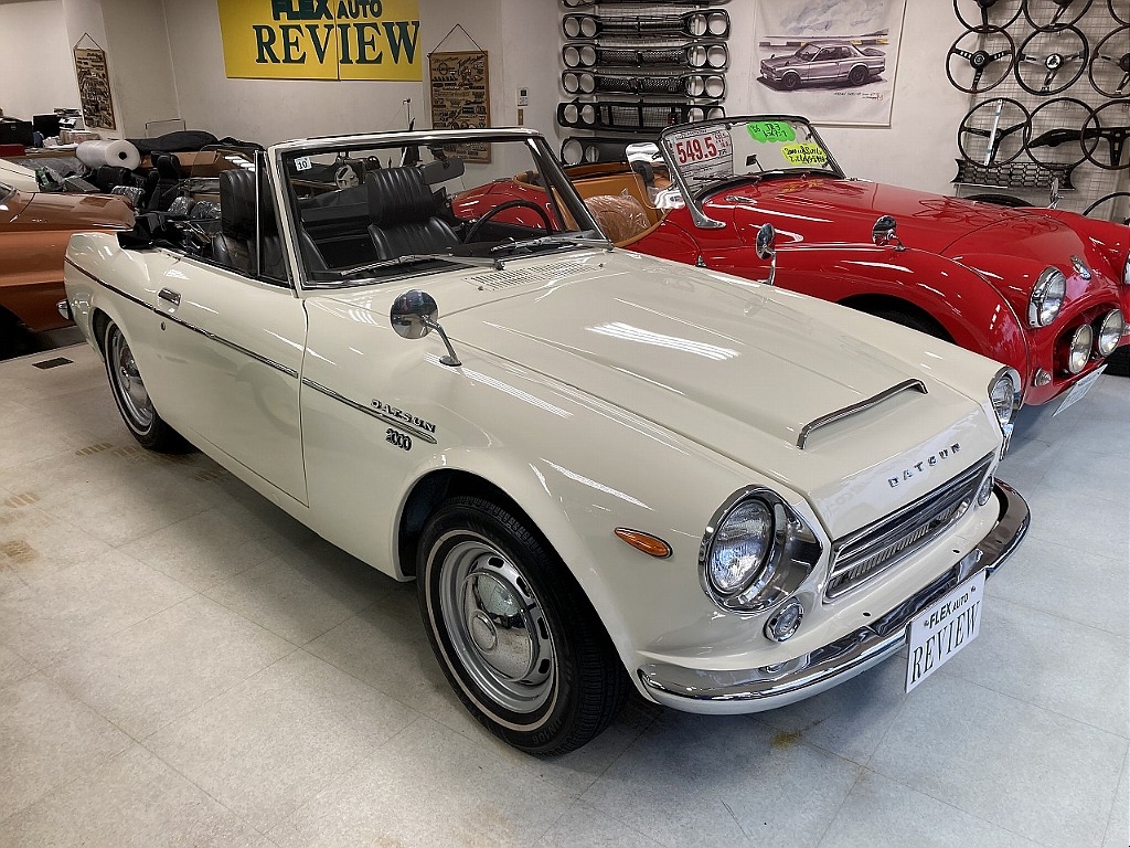 すっきりとした雰囲気の良いフェアレディが入庫いたしました!!以前当社にて販売した車両で今回お乗り換えで下取り車として入庫しました!!大事に乗ってきていただいたので絶好調です!!フロアや下周りの状態は良好でシャキッとしています!!外装は目に付くようなサビ浮きや傷み等ないキレイでツヤツヤな塗装状態!!フェアレディにはやっぱりアイボリーホワイトが似合います!!メッキ類も基本的にしっかりとしていて概ね良好です!!希少なてっちんホイールにキャップ&ホワイトリボンタイヤが良く似合っていますね!!これだけでオシャレに見えます!!幌はほぼ新品のキレイな物が付いています!!内装は基本的にノーマル状態をキープ!!ちょっとした経年劣化はございますが年式を考えれば良い状態と言って良いと思います。純正ステアリングも目立つ傷みなくキレイです!!1969年式ですのでヘッドレストも付いています!!機関はU20&ツインキャブに5速!!力強い走りが楽しめます!!力強いエンジンですのでスポーツキャブでなくても十分に楽しめます!!車検は令和8年10月まで残っていますのですぐに乗り出し可能ですよ!!見た目だけでなく乗っても良しのフェアレディ!!とっても人気のある車両です!!お問い合わせご来店お待ちしております!!!